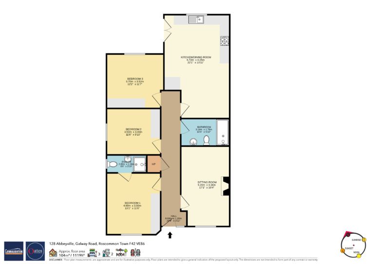 No.128 is a New Three Bedroom Bungalow Residence with an Internal Floor Area of c.1,119 Sq. Foot with spacious living accommodation throughout, situated on a large site located in the much sought after ‘Abbeyville’ development of Luxury Homes on the Galway Road in Roscommon Town.