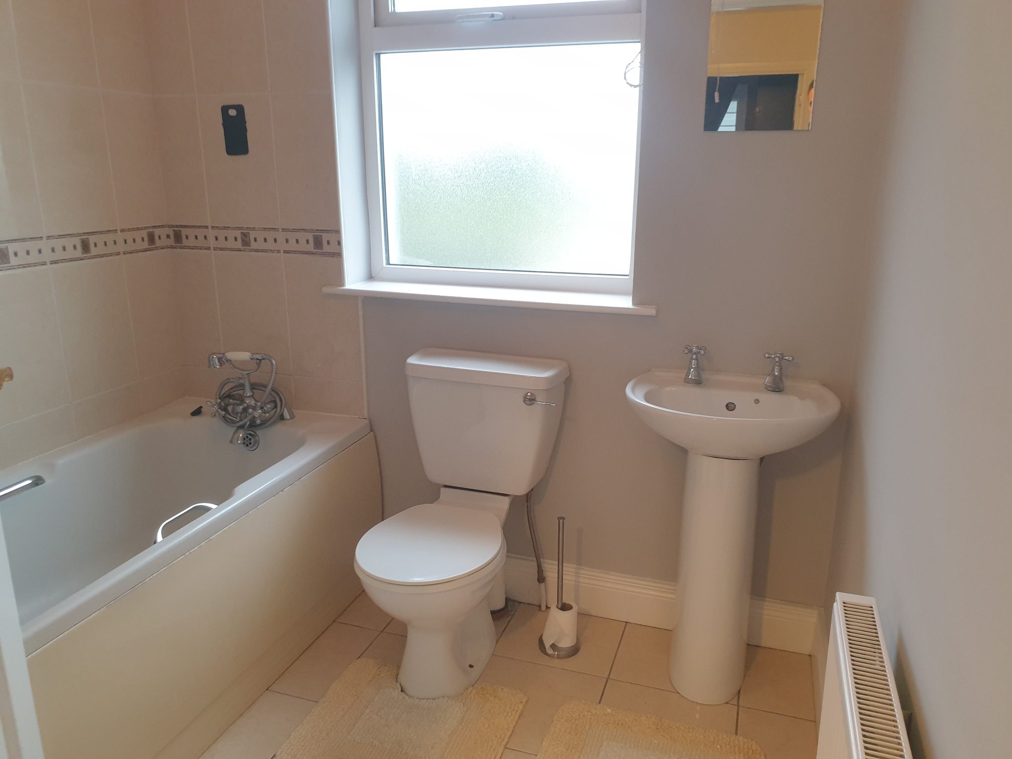 Bathroom 2.00m x 2.00m (6.56ft x 6.56ft) Tiled flooring with partly tiled walls. 3 piece suite.