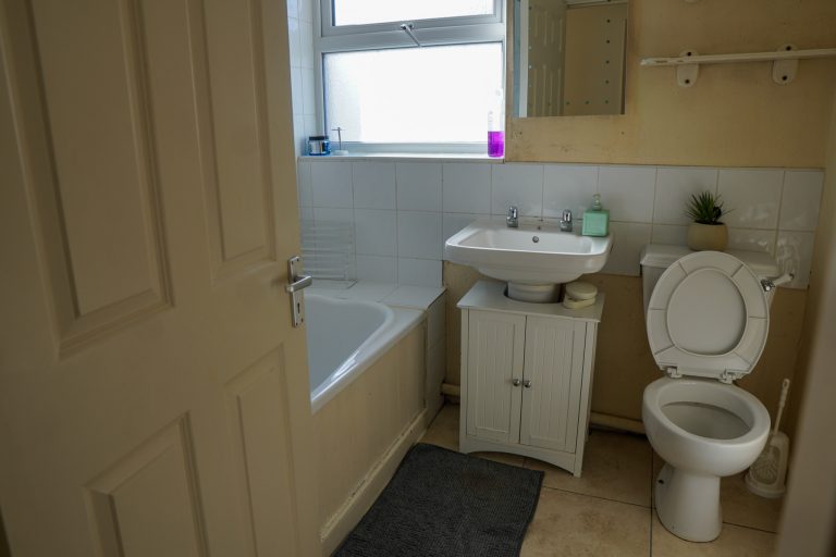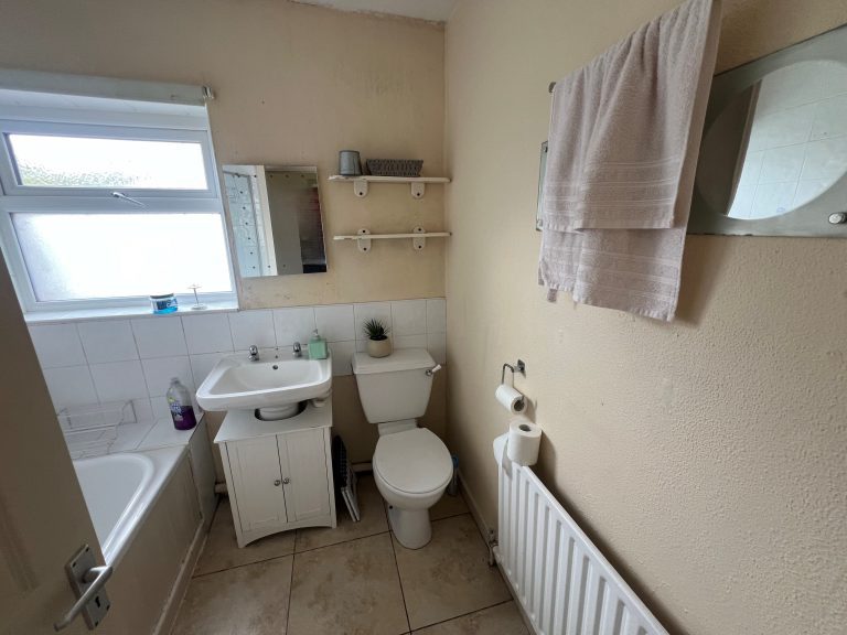 Downstairs Bathroom - 2.68m x 1.89m (8.80ft x 6.20ft) Fully tiled wall to floor, with 3 piece suite, Mira Electric Shower and a radiator