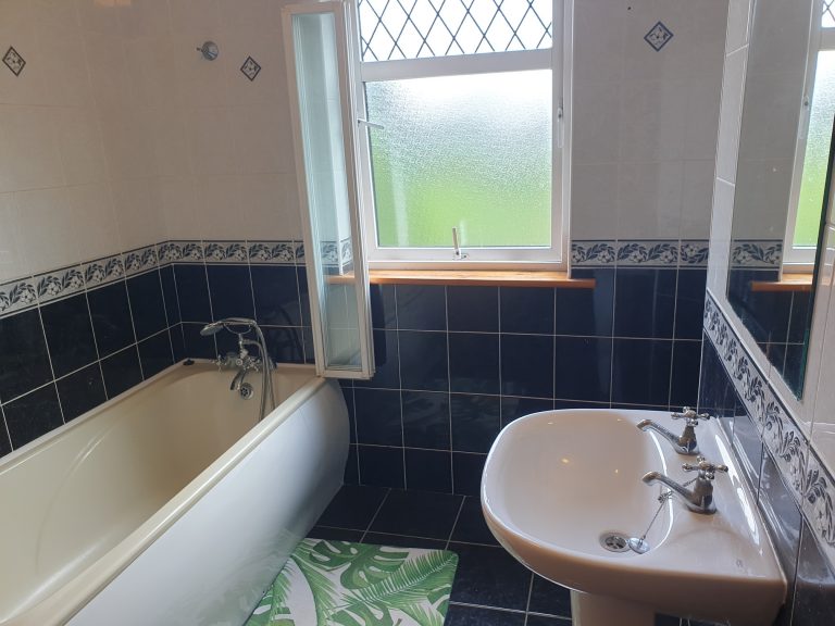 Bathroom 3.05m x 2.74m (10.00ft x 9.00ft) Tiled floor to ceiling. 4 piece suite. Shower over bath.