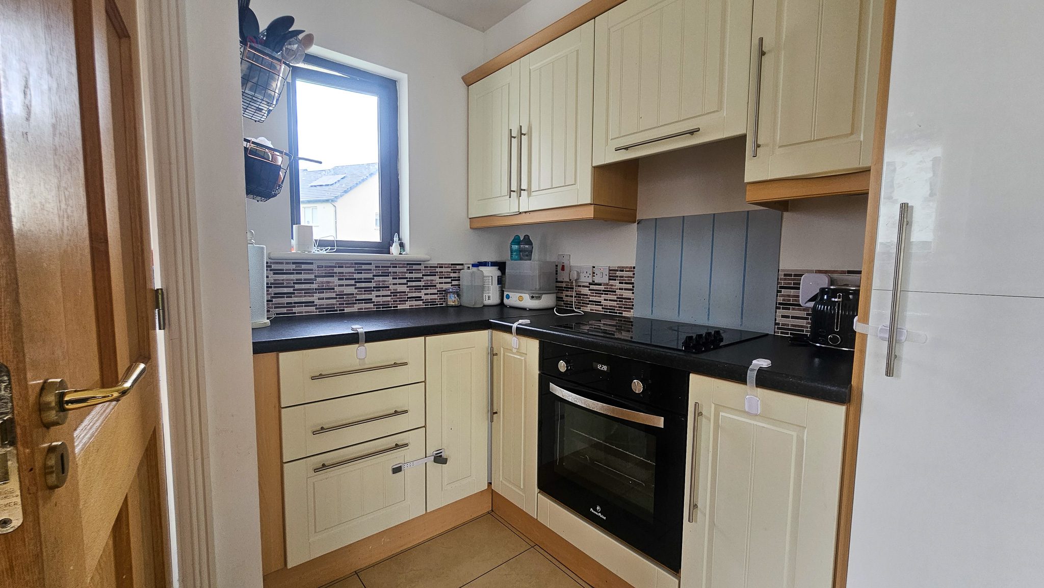 Kitchen/Dining Room: 5.18m x 3.05m — Fully fitted with electric hob & cooker, porcelain tiles, inset lighting, plumbed for dishwasher.