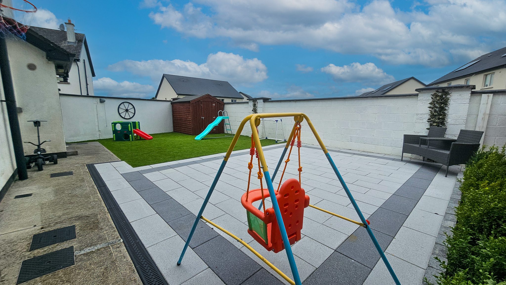 Maintenance-free rear garden with attractive paving