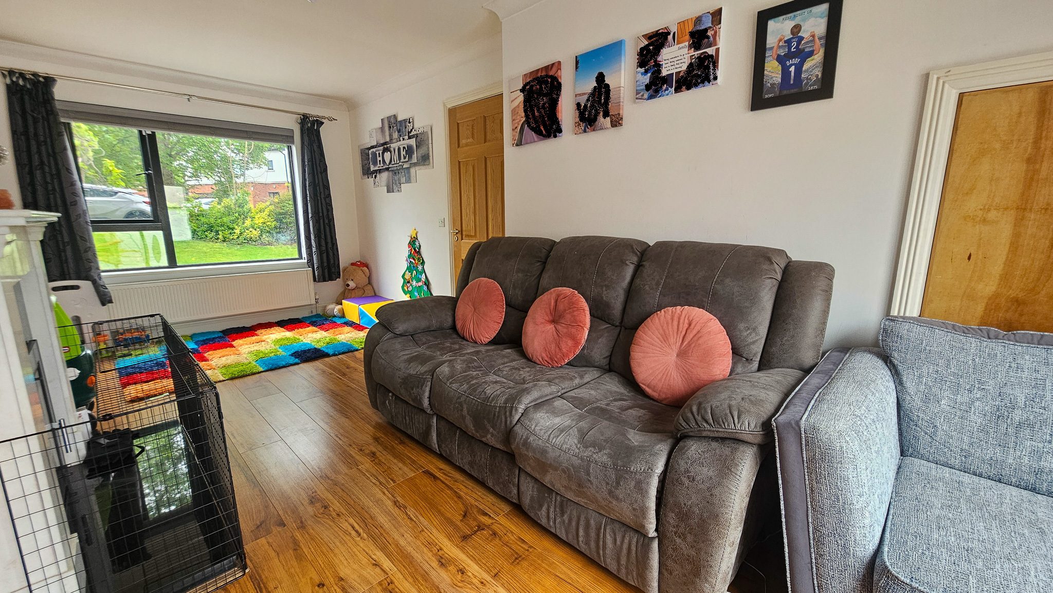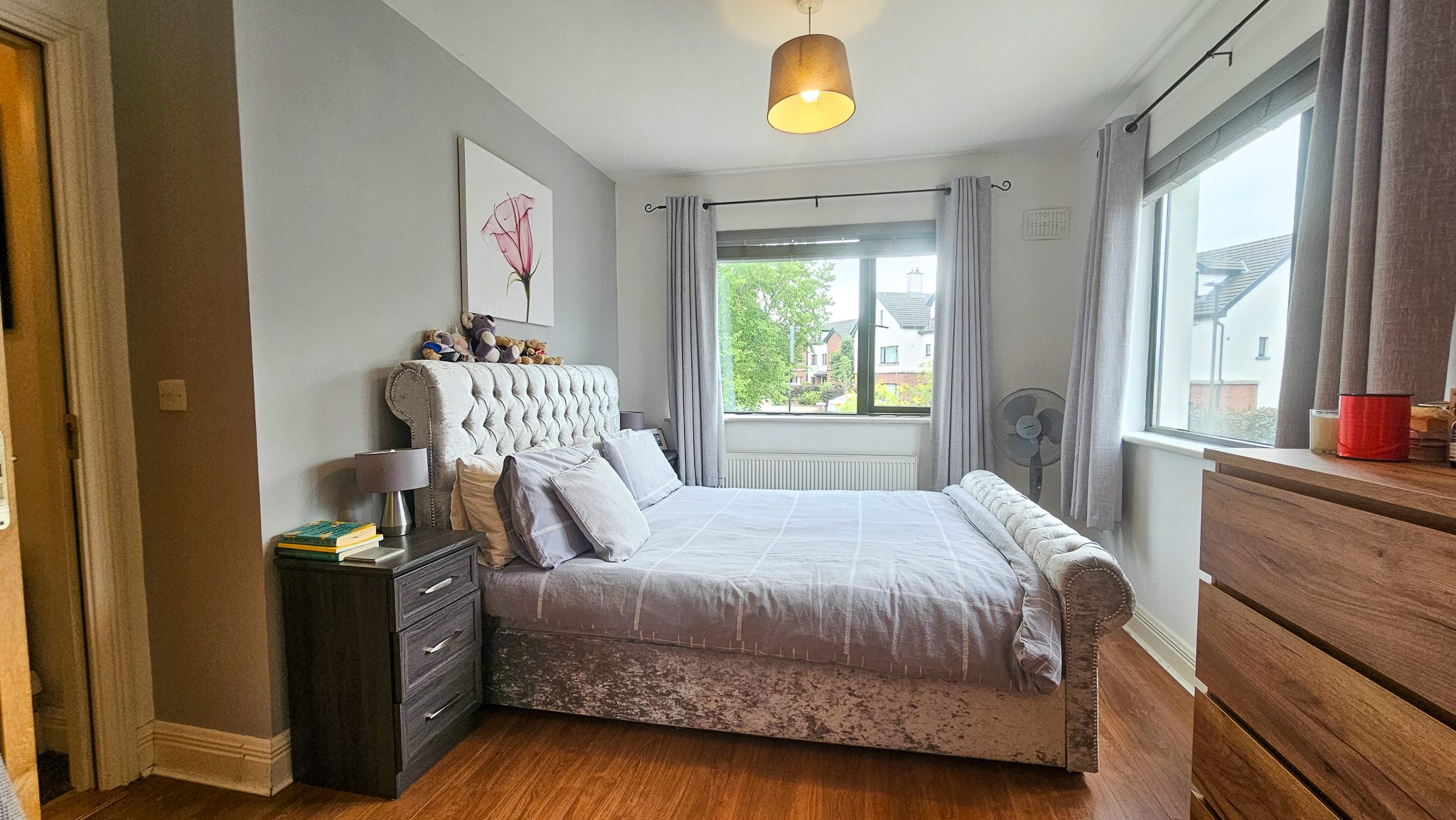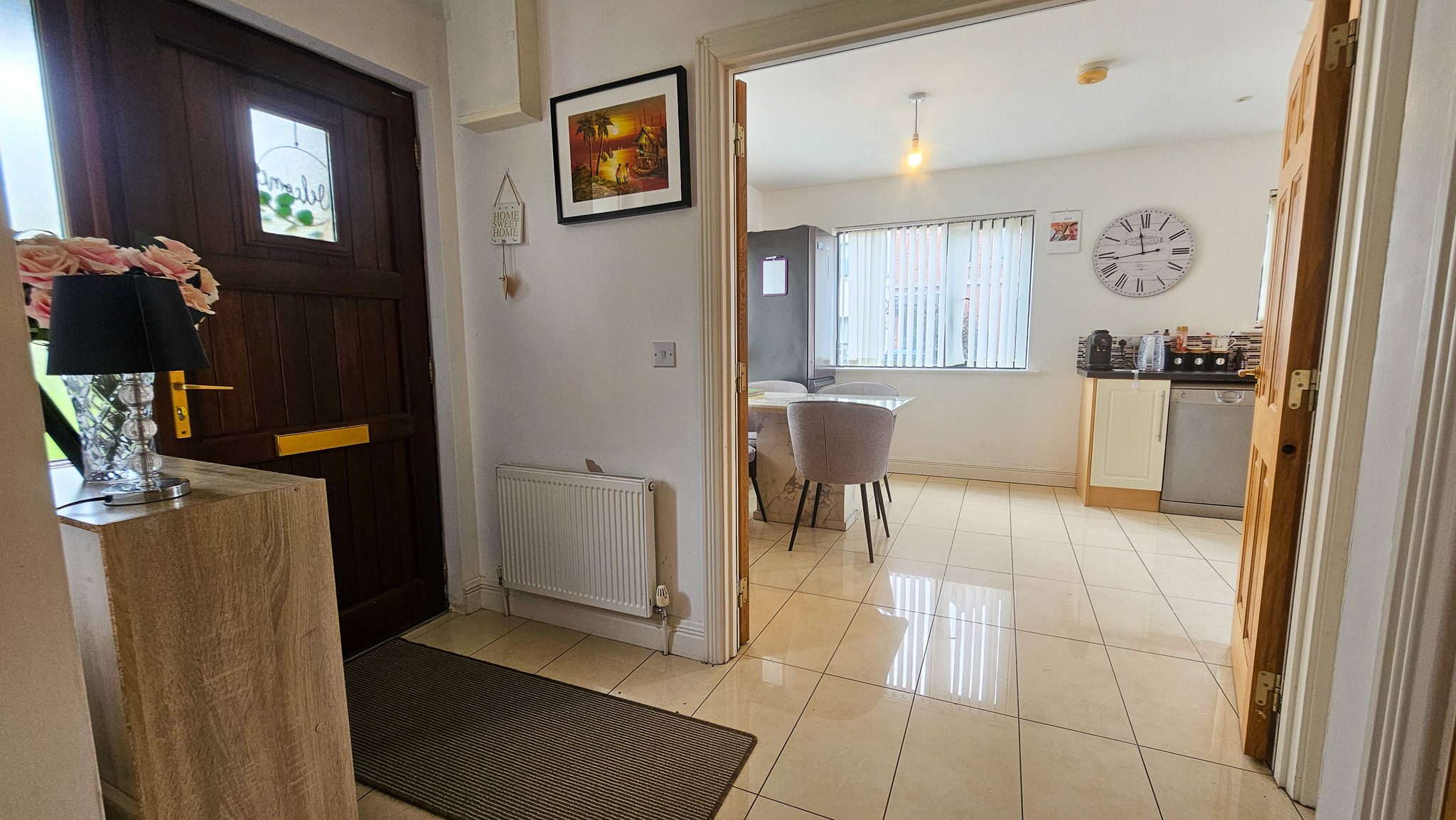 Set in a mature residential area, the home features a generous layout with open-plan kitchen/dining area, a large sitting room, utility room, two en-suites, and a further two bathrooms. Outside, the low-maintenance rear garden includes a paved area and gated side entrance.