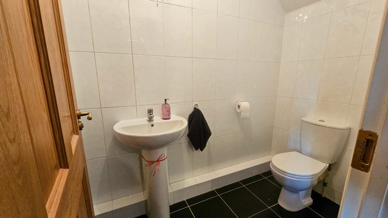 Downstairs Bathroom: 1.83m x 1.83m — 2-piece suite, tiled floor.