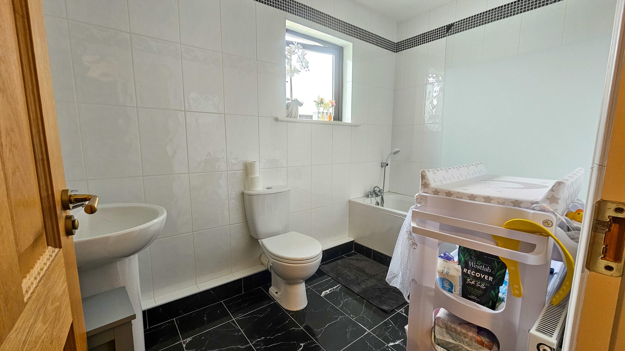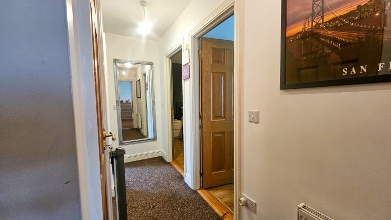 Main Bathroom: 3.05m x 2.13m — Fully tiled with 4-piece suite and electric shower.