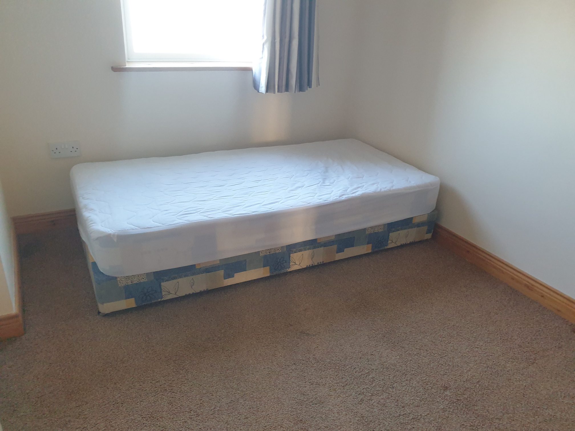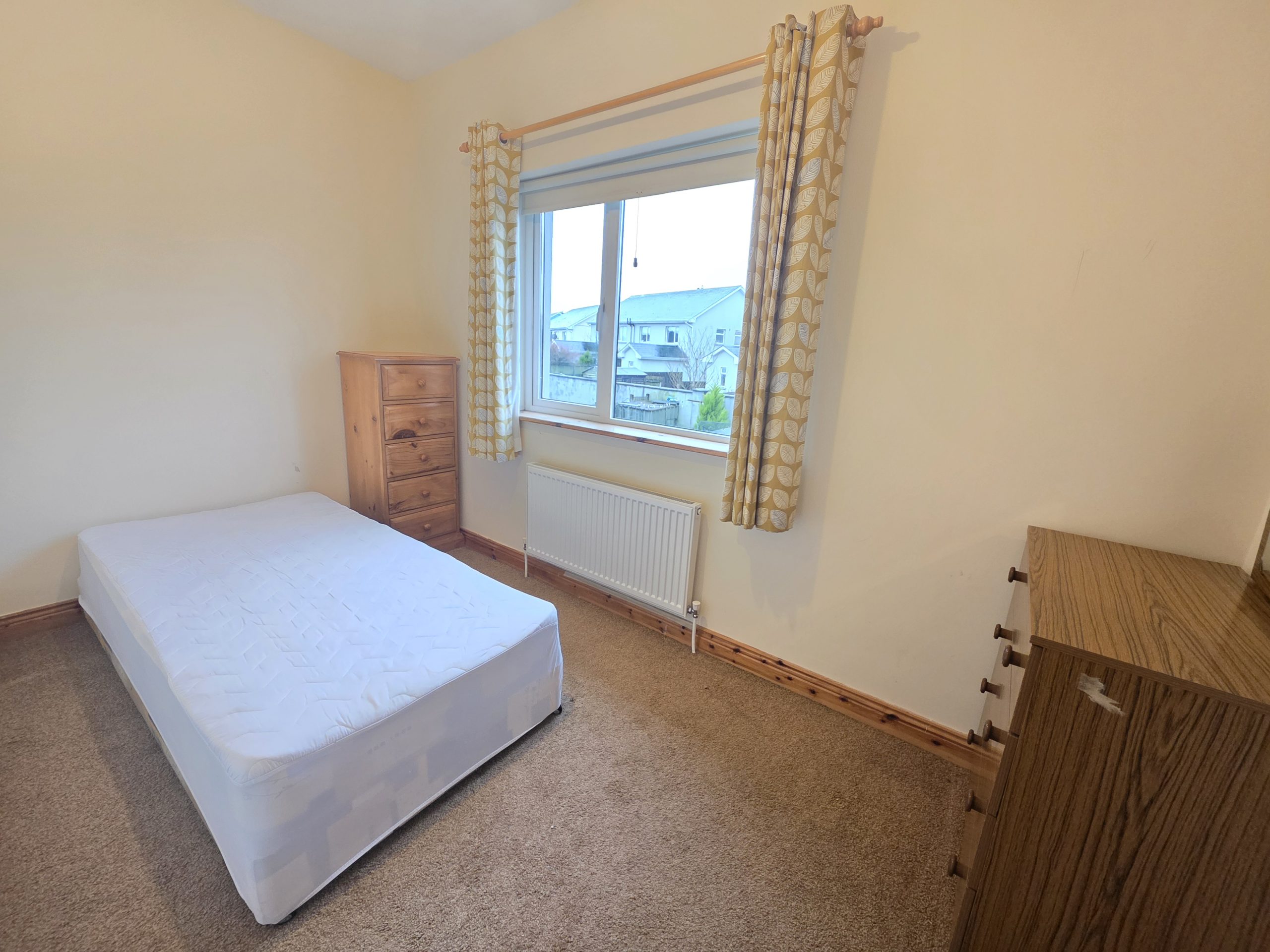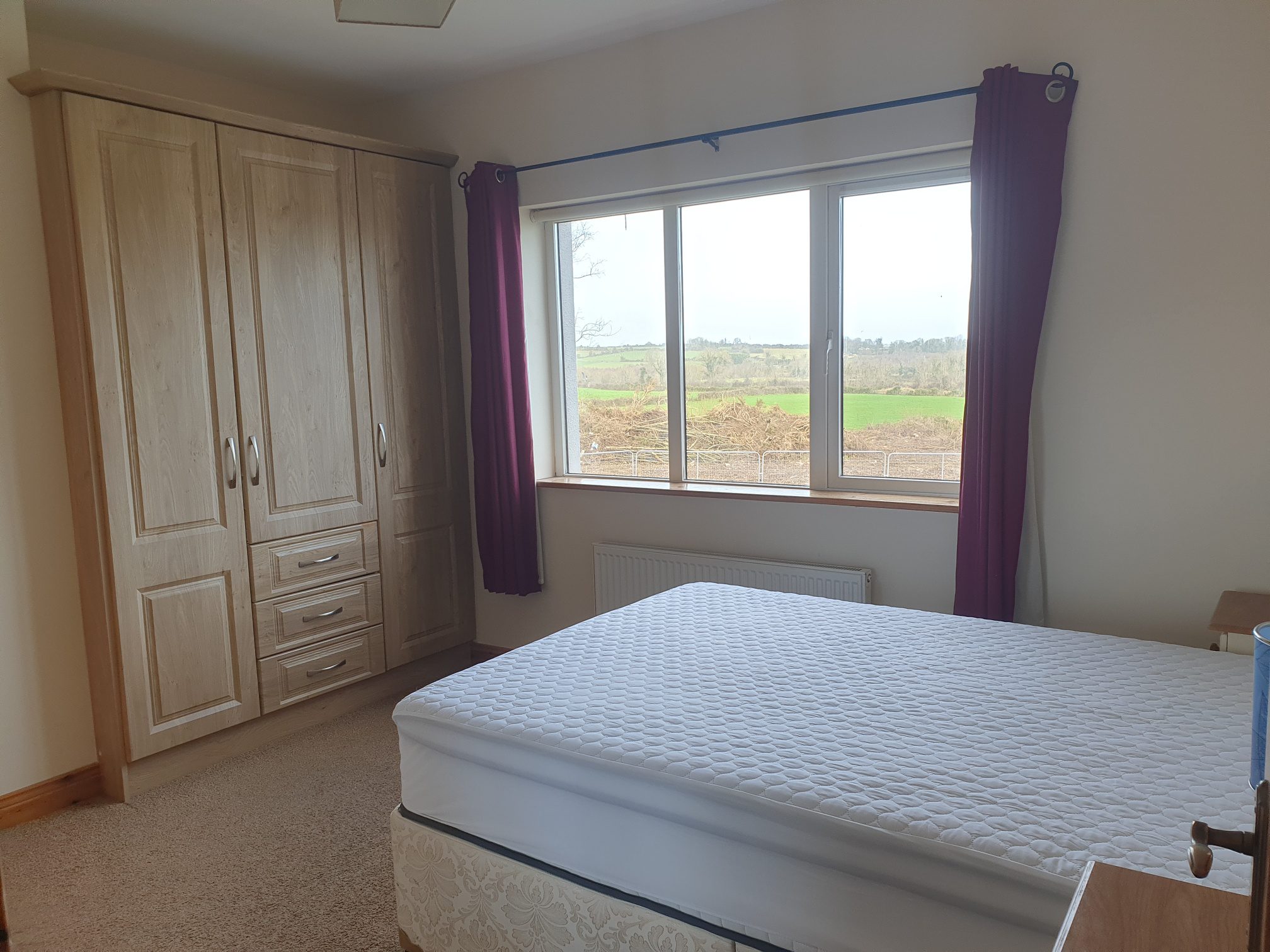 Carpet flooring. Free-standing wardrobes.