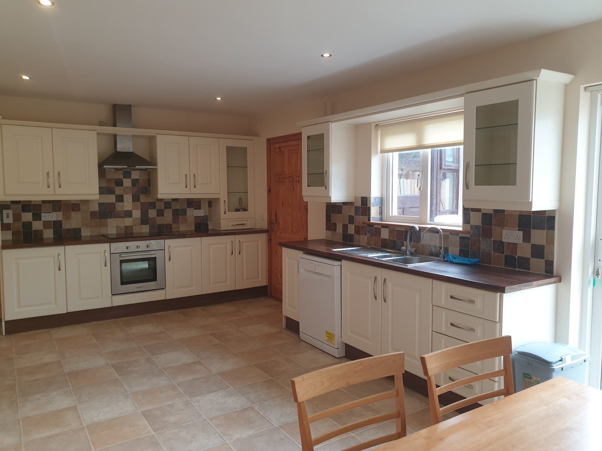 Vinyl flooring. Fully fitted modern kitchen with integrated appliances. Water softener fitted. Patio door leading to rear garden. Inset lighting.