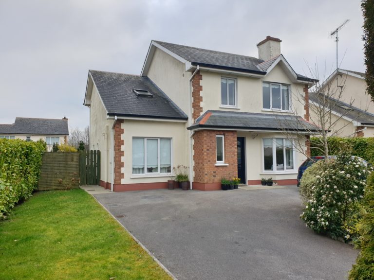 Stunning 4 bedroom detached property located in this hallmark development adjacent to the Abbey hotel and all Roscommon town amenities. Within 5 minutes walking distance of all local Montessori, Primary and Secondary schools, local Church, Molloy’s Bakery and Coffee Shop, Londis supermarket, local pubs, library and Roscommon town train station (with a daily train to Dublin). Presented for sale in showroom condition with no expense spared, the house has designer wallpaper throughout, wooden panelling in both the sitting and living room alongside beautiful coving on the ceilings making the house warm and inviting. Cosy up on the window seat with views into the garden. This property comprises entrance hallway, sitting room, kitchen, dining room, utility, 3 bathrooms, 4 large bedrooms (master ensuite and walk in wardrobe) with family bathroom. Outside large mature site area with excellent array of flowers and shrubs that is enclosed and safe for children or pets. Shed to the rear and a side awning on the house to cover bikes or outdoor gear. Rear garden is south-facing with continuous sun all year round!