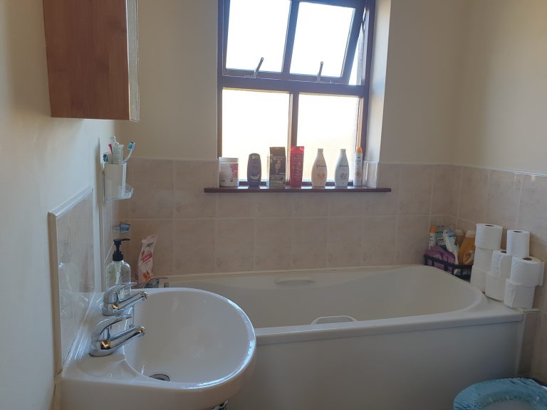 Bathroom 2.74m x 2.44m (9.00ft x 8.00ft) Tiled floor with part tiled walls. 4 piece bathroom suite with electric shower.