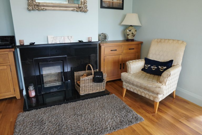 Sitting Room 3.93m x 5.67m (12.90ft x 18.60ft) Laminate flooring. Inset solid fuel stove.