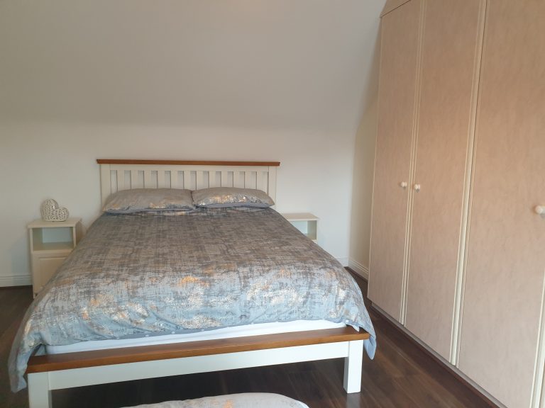Downstairs Bedroom 4.88m x 2.44m (16.00ft x 8.00ft) Carpet flooring. Walk in and built in wardrobes. Fully tiled ensuite off with power shower.