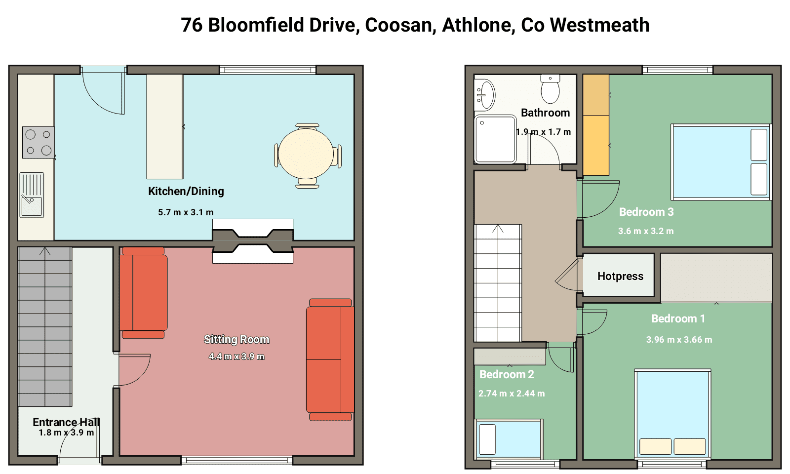 Sitting Room – 4.48m x 3.96m (14.70ft x 13.00ft)