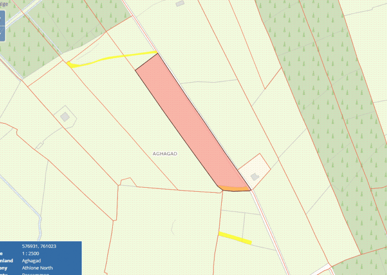c. 3.5 acres of excellent quality elevated lands located in a quiet countryside setting convenient to the village of Creggs and Castlecoote and 10 minutes from Roscommon Town Centre. The said lands are located at the end of a quiet cul-de-sac overlooking the village of Creggs and hold obvious site potential subject to planning permission.