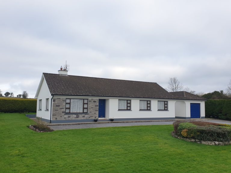 Accessed via wrought iron entrance gates, this immaculately presented 4 bedroom bungalow with attractive part brick façade must be seen to be appreciated. Situated on a large mature site with spectacular views over the surrounding hills and valley, this property is just 15 miles from Roscommon town and 20 miles to Ballinalsoe and Athlone town centers in a quiet countryside setting.
