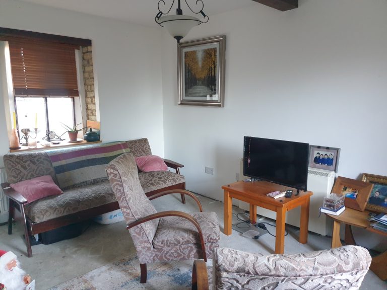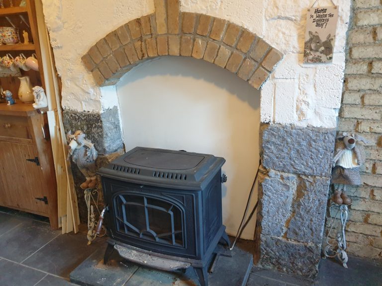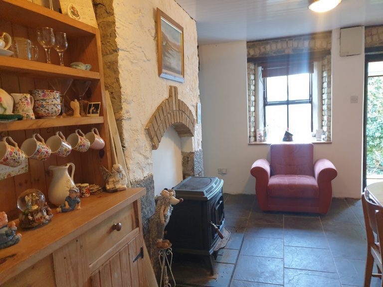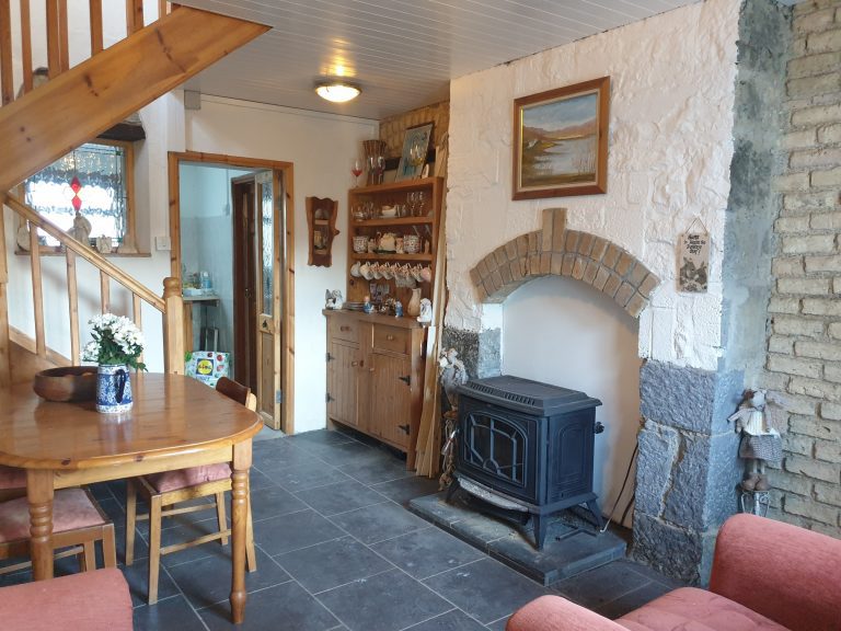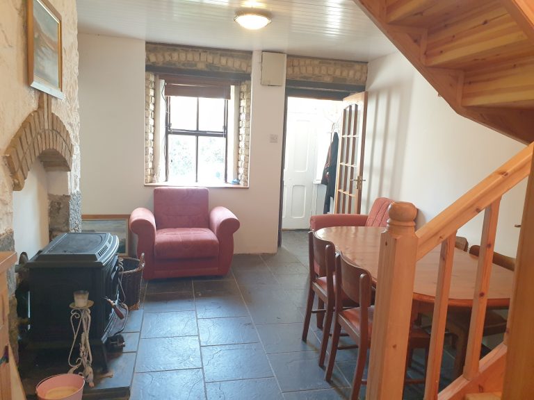 Sitting/Dining 4.88m x 3.35m (16.00ft x 11.00ft) Slate tiling floor. Solid fuel stove with back boiler. Stairway to first floor. Feature natural brickwork around windows.