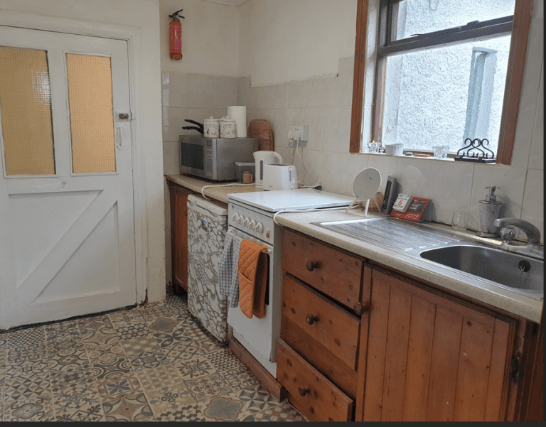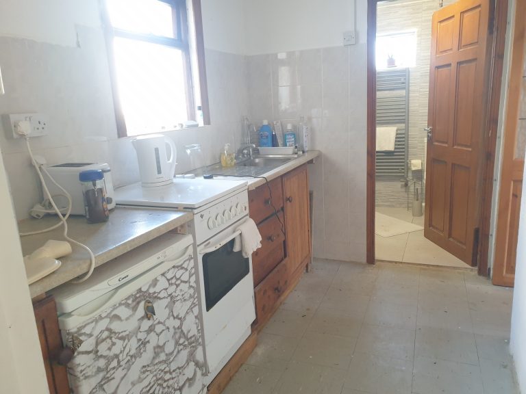 Kitchen 3.05m x 2.44m (10.00ft x 8.00ft) Vinyl flooring. Fitted units and sink.