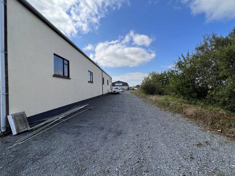 This unit comprises of roller shutter door to the front with separate doors to the side and rear. Large yard to the rear suitable for parking and storage. Accommodation comprises office space, kitchenette, toilet and separate mezzanine unit on first floor. The overall floor area of this unit is over 4,000 sq. ft. This unit is suitable for workshop or commercial use and is just 2 minutes from the Dublin to Galway motorway.