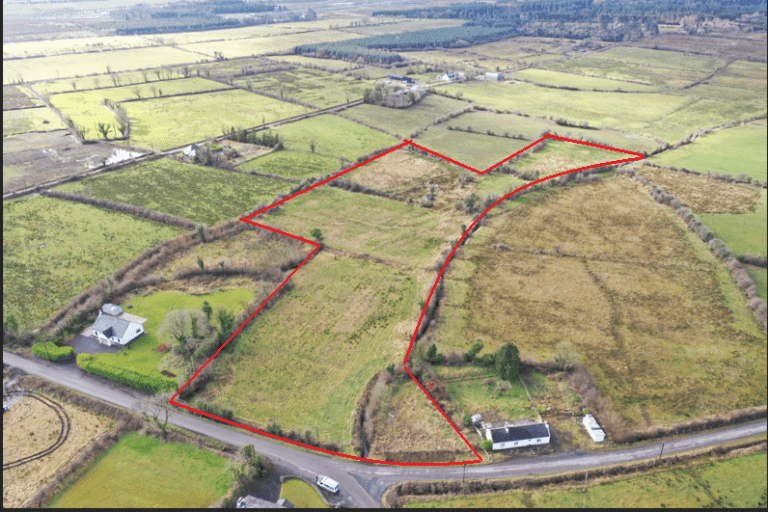 Quality parcel of lands set out in 2 lots either side of the public road with frontage onto 2 roads, holding site potential subject to planning permission. The lands are of good quality and comprise folio no RN595 elevated lands c. 22 acres in one lot with c. 6.5 acre plot across the road. Note, lands can be sold independently should market interest dictate. The lands are located just off the N61 route convenient to both Tulsk and Elphin Towns in a renowned farming area.