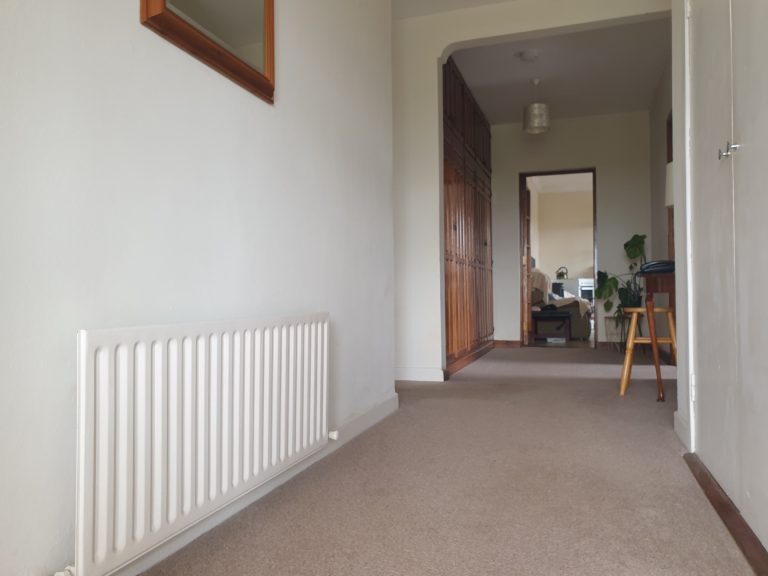 Entrance Hall 7.92m x 1.83m (26.00ft x 6.00ft) Carpet flooring. Large closet off.