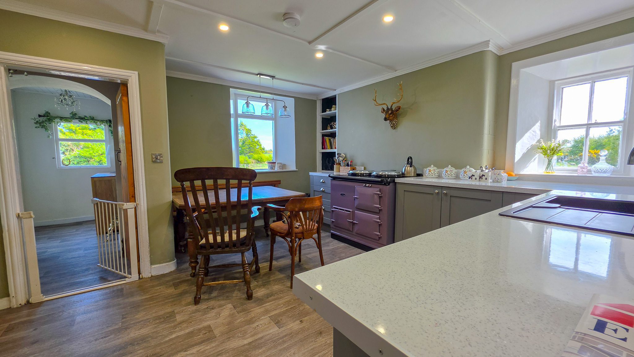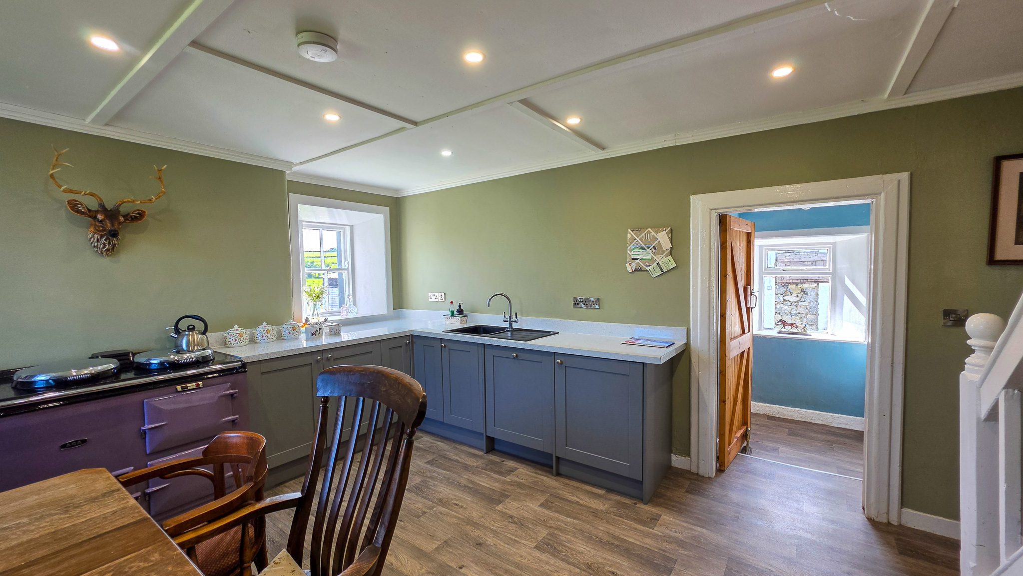 The residence has been carefully renovated to provide comfortable, modern living while retaining traditional farmhouse character. Accommodation includes a welcoming kitchen/dining room with an Aga, ideal for busy country living, suited to family meals and entertaining, and a practical utility room. The sitting room, featuring a bay window, enjoys pleasant views across the land. There are two bathrooms, one located on the ground floor and one upstairs, providing added practicality for family and yard use.