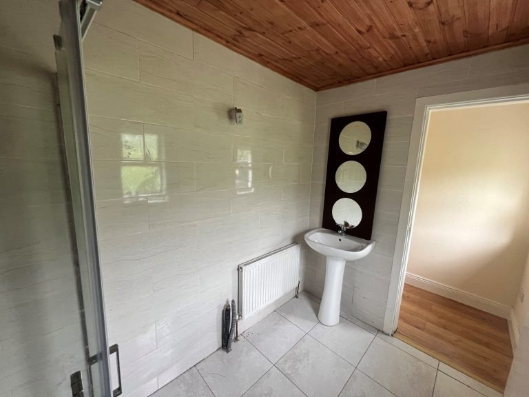 Bathroom -2.96m x 1.95m (9.70ft x 6.40ft) Fully tiled wall to floor, 3 piece bathroom suite with Triton electric shower and radiator
