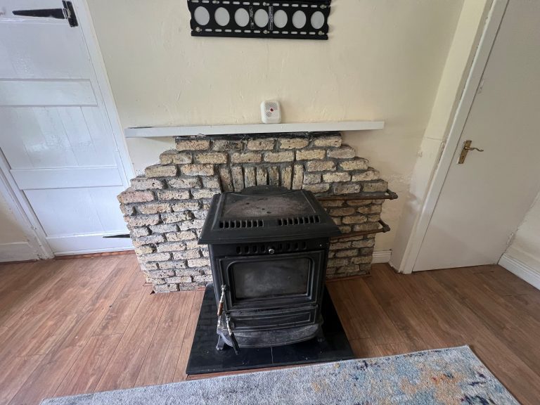 Sitting Room- 4.88m x 3.35m (16.00ft x 11.00ft) Wooden floor, brick fireplace , solid fuel stove with back boiler