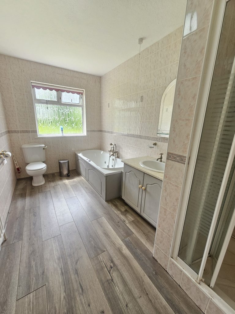 Bathroom 4.57m x 2.44m (15.00ft x 8.00ft) Timber flooring. 4 piece suite with electric shower and Jacuzzi.