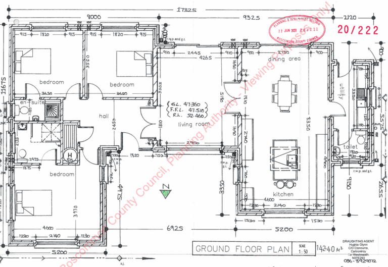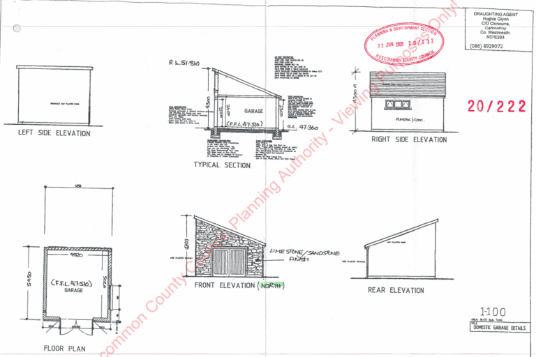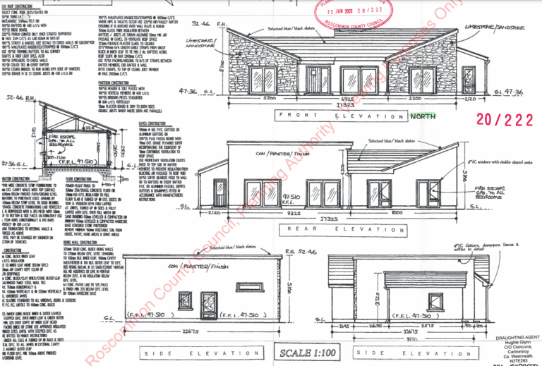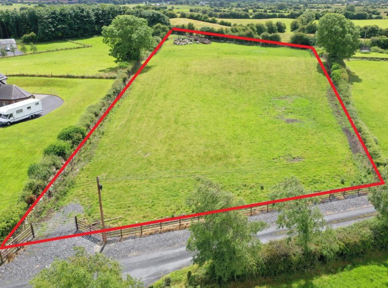 Prime elevated field with the benefit of full planning permission to build a residence thereon, Ref: Roscommon County Council 20/222. Spacious site area c. 2.3 acres with natural elevation and panoramic views of the surround countryside.