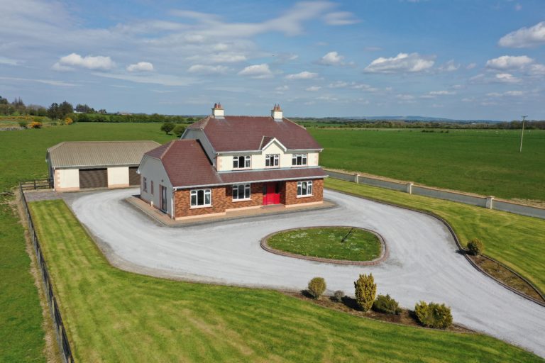 Exceptional 2 storey residence built on an elevated hill side site with spectacular views over the surrounding countryside. Situated just off the N60, 15 minutes from Roscommon Town centre, this is a rare opportunity to acquire a property of this calibre which was built to the highest standard with no expense spared. Accommodation consists :- entrance hallway, sitting room, living room, large kitchen with arch to dining area. Utility with w.c. off and office/playroom. First floor:- 4 large bedrooms all with built in wardrobes and master ensuite together with family bathroom.