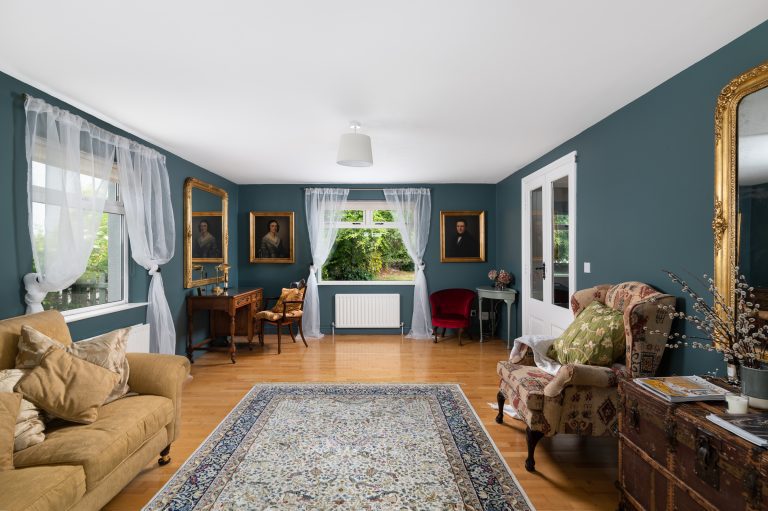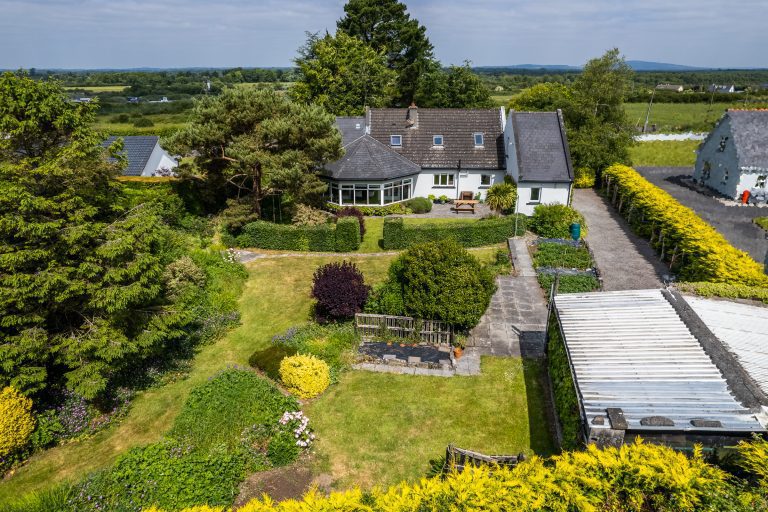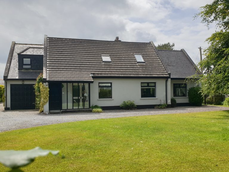 This bright and spacious 4 bed, 3 bath family home is filled with character and charm. It boasts a mature and sunny south-facing rear garden and patio areas over a 0.5 acre site. Set in a highly desirable area within a short walking distance to Portrunny Harbour on Lough Ree and a 10 minute drive to Roscommon Town and 20 minute drive to Athlone Town. Entering the property, a bright front porch and hall leads to a large kitchen/dining room and utility room. A large living room, with a new marble fireplace and high efficiency insert stove, leads to a formal dining room and south-facing sunroom with beautiful garden views. The ground floor also has a bedroom and bathroom with shower. Upstairs there is a large and luxurious master suite with bedroom, dressing room and bathroom with Jacuzzi bath. Leading off the airy landing are two spacious and bright bedrooms including a large home office/games room and a family bathroom. All bedrooms have fitted wardrobes or built in storage space. There is an attached garage and work room/studio and two large sheds to the rear of the property. Viewing is a must for anyone who is serious about purchasing a marvellous family home. Viewing is strictly by appointment only.