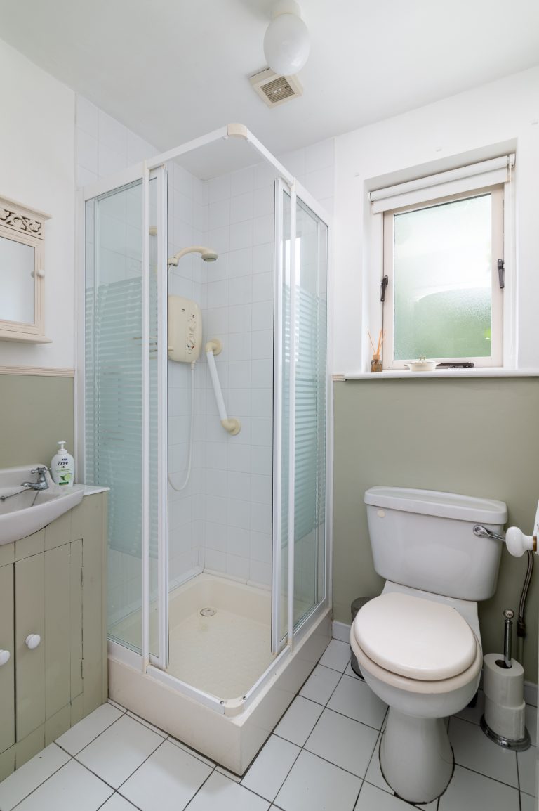Downstairs Bathroom - 1.83m x 1.52m (6.00ft x 5.00ft) Tiled floor to ceiling with electric shower.