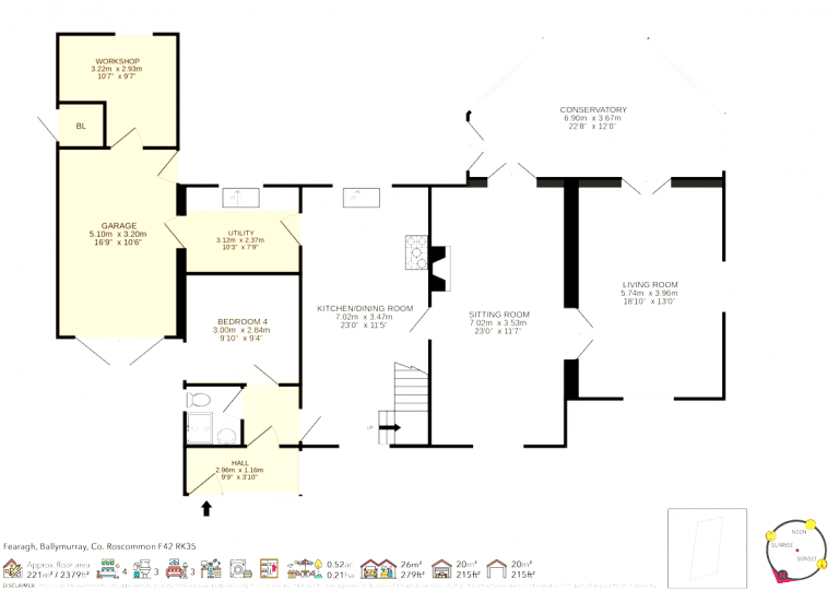 Sunroom - 7.01m x 3.66m (23.00ft x 12.00ft) Electric underfloor heating and rads. Inset lights.