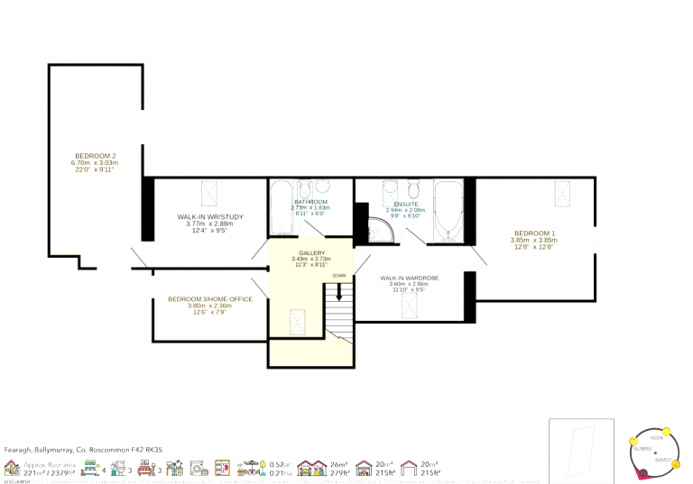 Bedroom 1 - 7.01m x 3.35m (23.00ft x 11.00ft) Carpet flooring. Ensuite with fitted wardrobes and walk in dressing area.