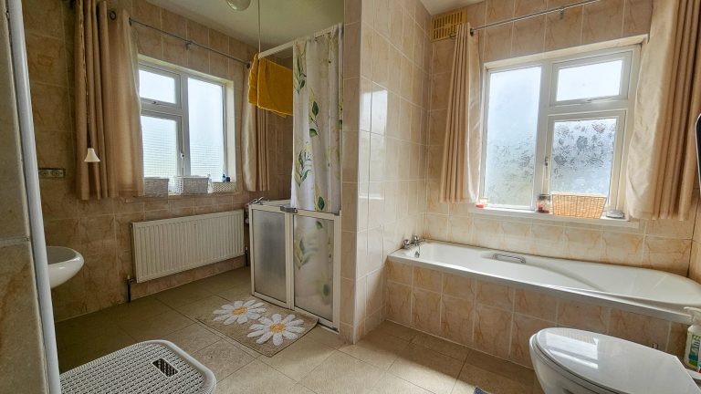 Bathroom 3.66m x 2.44m (12.00ft x 8.00ft) Floor to wall tiling
