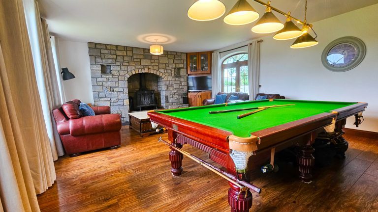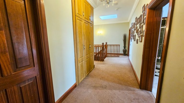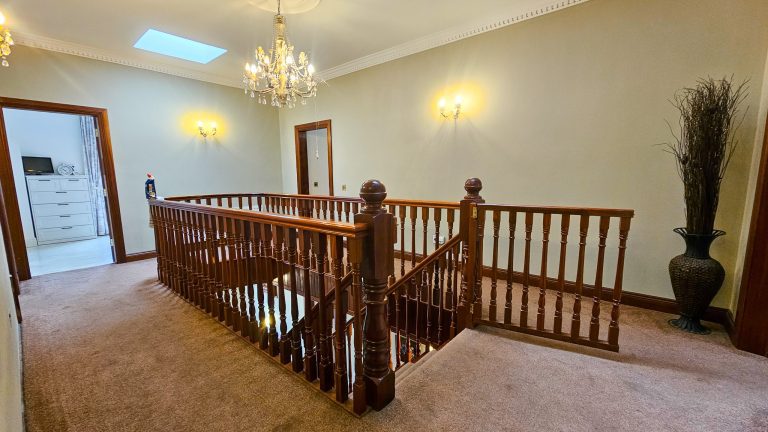 Spectacular 6 bedroom (all en-suite) residence situated in Roscommon's premier residential location adjacent to Roscommon Golf Club and within walking distance to all Town amenities. Spacious property extending to c. 4200 sq. ft., incorporating generous living space including open plan kitchen with pocket doors to large living room, exceptional games room with feature natural limestone fireplace together with elegant sitting room to front.   Spacious fully fitted utility with floor to ceiling storage and family bathroom completes ground floor.  First floor consists of 6 bedrooms (all en-suite) and fully serviced office with natural light.