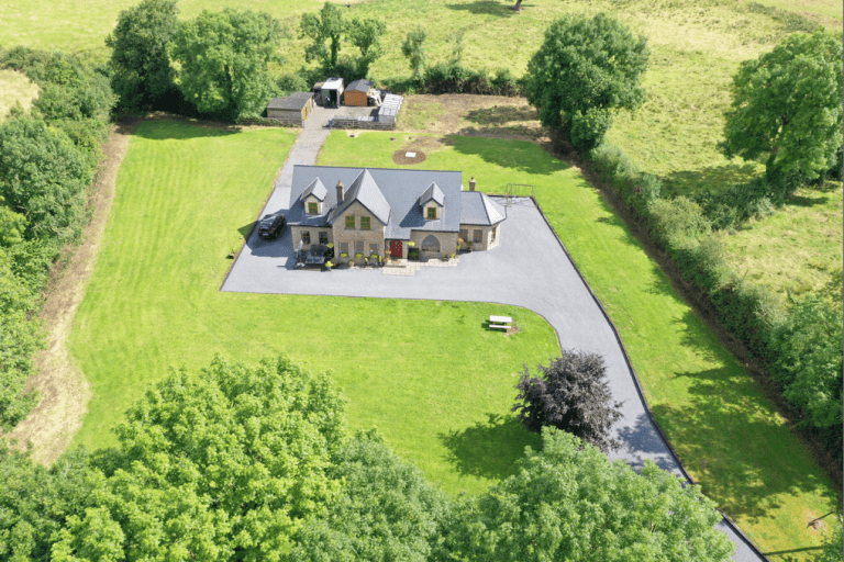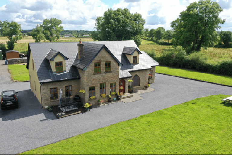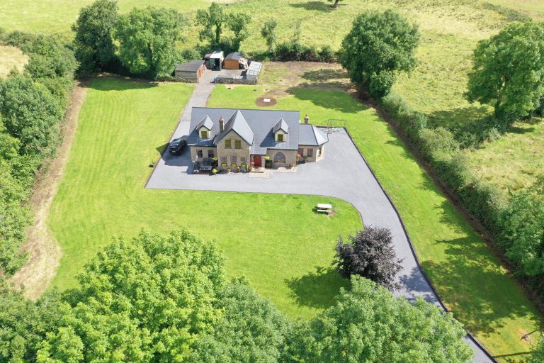 Majestic 5-bedroom (3 ensuite) house set on c. 1.5 acres of landscaped grounds with mature trees and hedging located in a quiet countryside cul-de-sac just 3 miles from Lanesboro town.