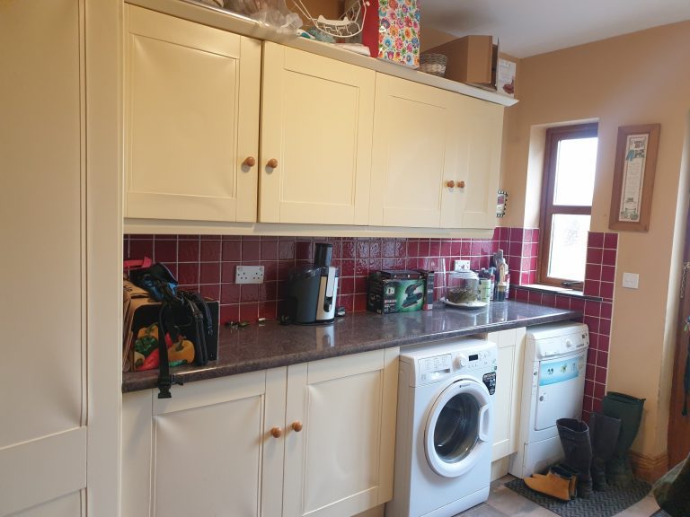 Utility Room 3.96m x 2.74m (13.00ft x 9.00ft) Tiled flooring. Fully fitted units. Plumbed for washer and dryer. Door to back garden.