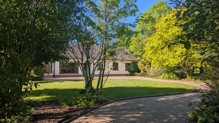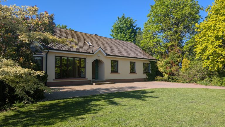 Spacious 3 bedroom bungalow situated on c. 1.4 acres of magnificent landscaped grounds overlooking Roscommon Golf course in the Town's premier residential area.   The site is zoned residential and has all main services available holding obvious development potential in a high value proven sales area.