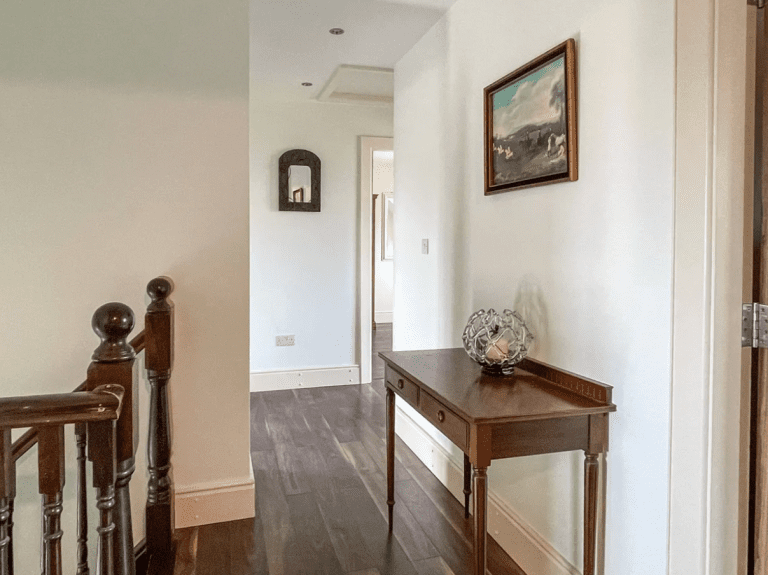 Front and rear gardens surround the house with manicured lawns, mature hedging, shrubs and trees making this a tranquil rural idyll to work from home.