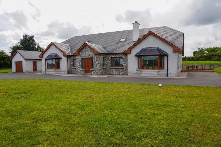 This Exceptional 6-Bedroom,4-Bathroom Detached Dormer-style property is set on a landscaped mature 0.5-acre site. Offering stunning views of Lough Ree and the surrounding countryside. Finished to an extremely high standard, it features an open plan layout with large windows and patio doors, enhancing light and space, complimented by oil-fired central heating and double-glazed windows. The exterior boasts well maintained landscaped lawns, with driveway, and an all-weather PVC decked patio area patio.