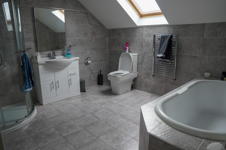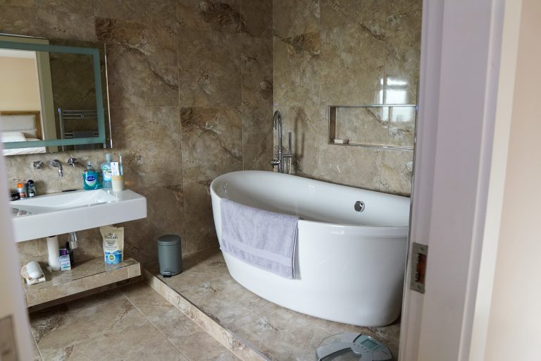 Bathroom - 3.35m x 3.05m (11.00ft x 10.00ft) Tiled floor to ceiling, 4-piece suite, heated towel rails
