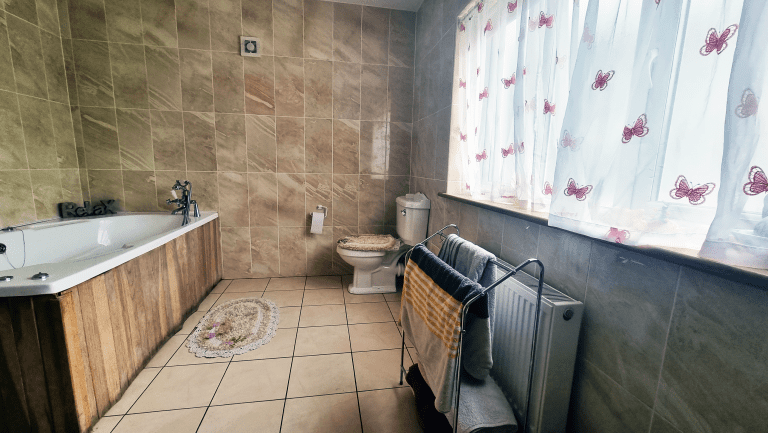 Fully tiled, 3-piece suite with Jacuzzi bath.