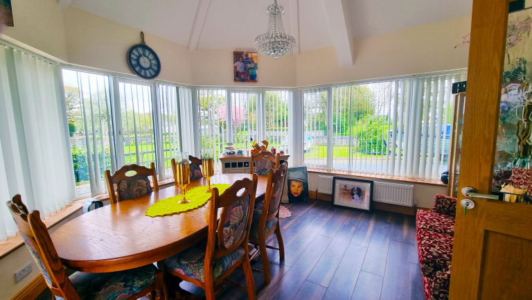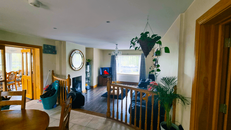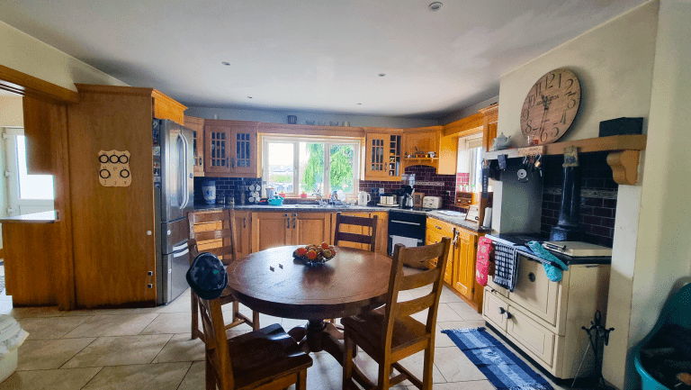 A majestic 4-bedroom detached dormer style residence finished to a high standard both inside and out, this property stands on c. 1.29-acre mature site. This family home, located in a vibrant rural community on the outskirts of Ballinasloe, presents an exquisite blend of country living and modern design.